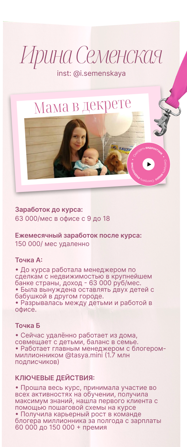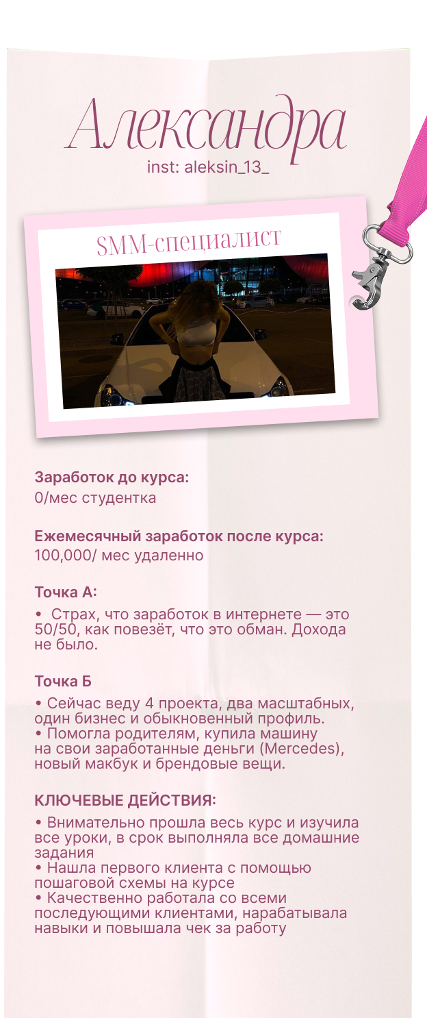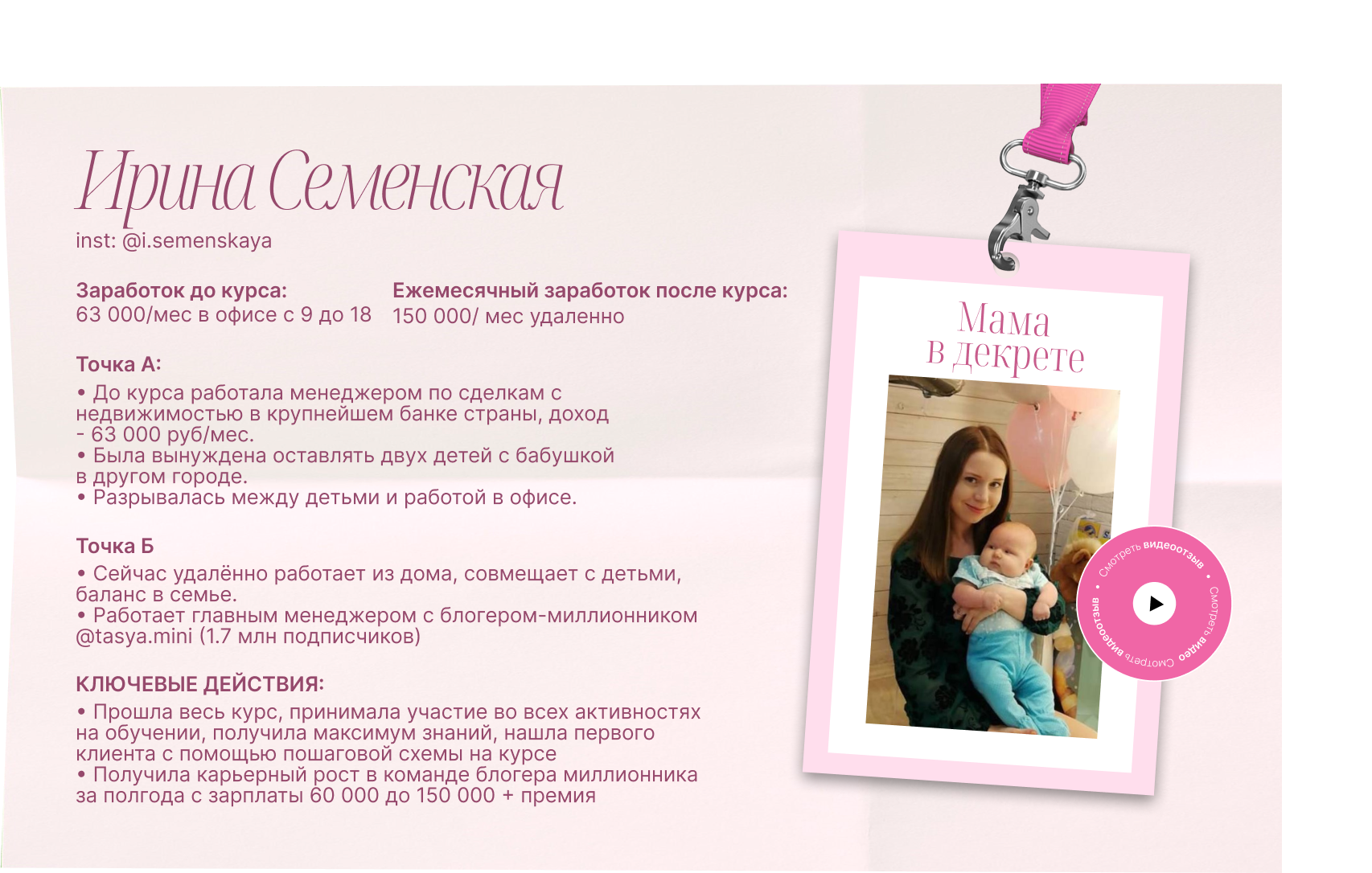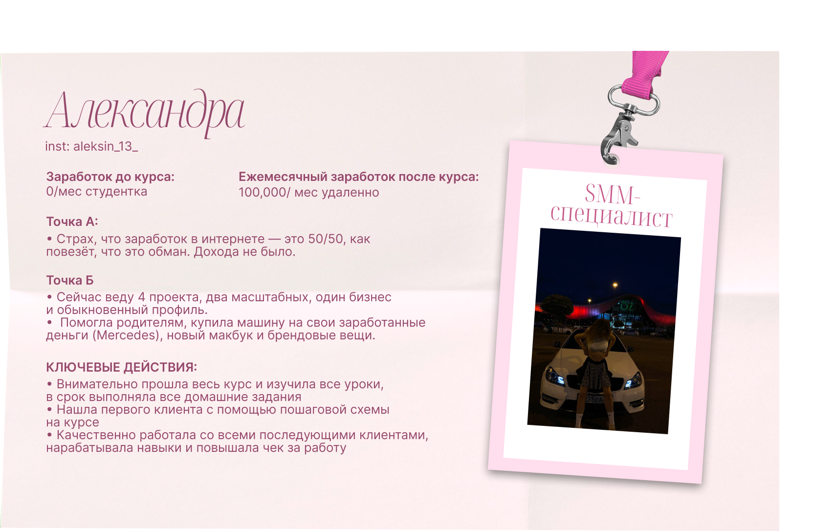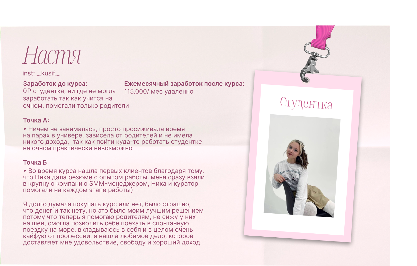 Если выполнять все домашние задания и применять знания на практике - вероятность высока. Школа уже показала свои результаты на сотнях учениц, которые начали зарабатывать на SMM уже во время обучения.