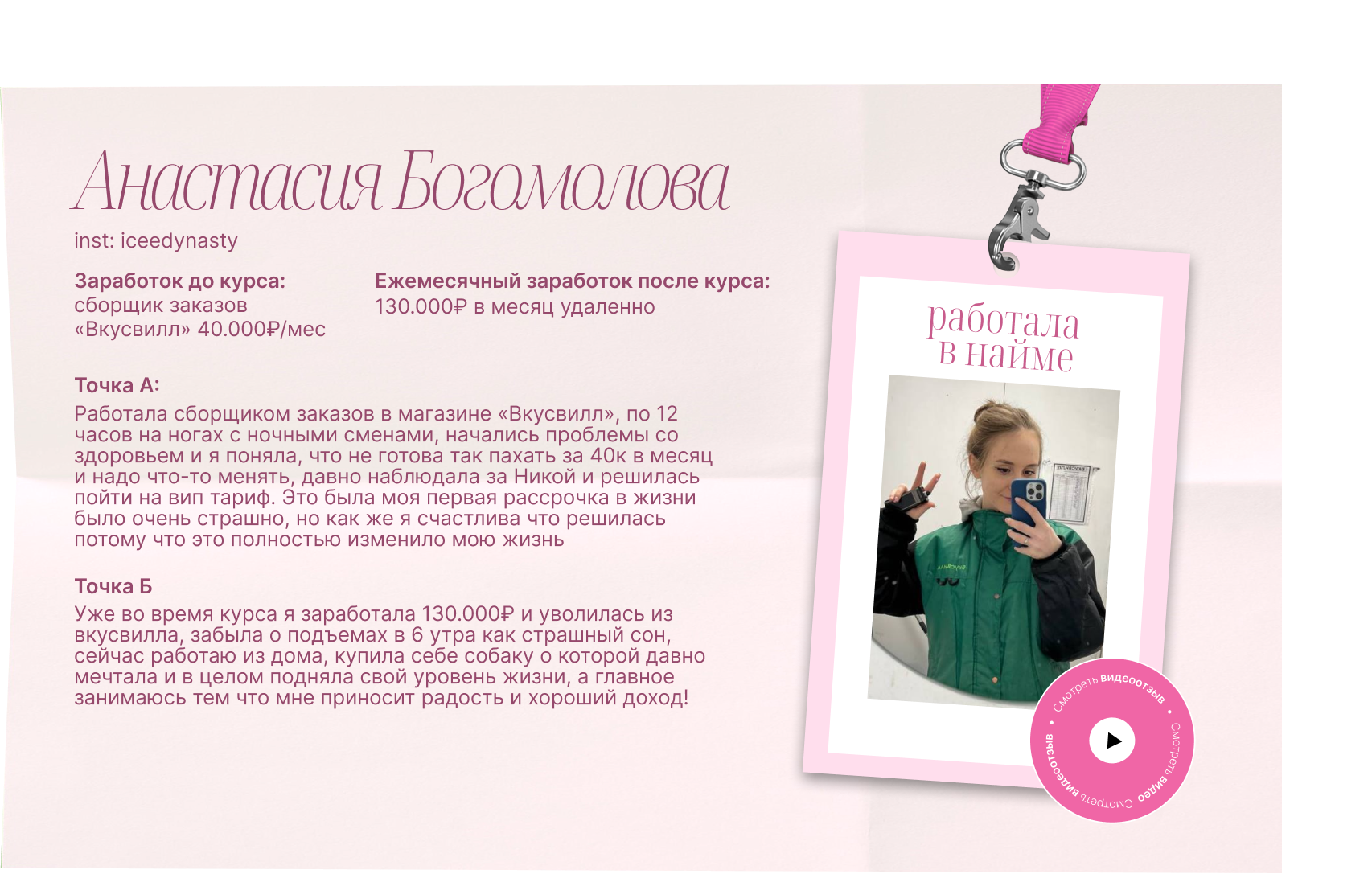 Подходит, если тебе важно в обучение, поддержка и понятная система выхода на результат — без одиночества и хаоса.